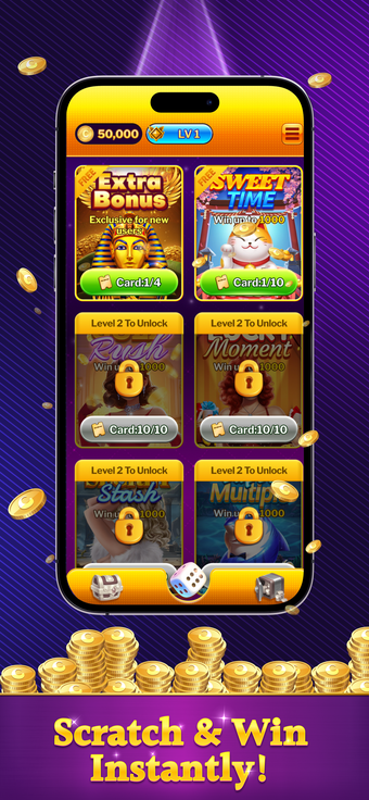 ZipScratchは、隠れたサプライズを明らかにするためのスクラッチの概念に基づいた楽しく簡単なゲーム体験を提供します。このiPhoneアプリは、ユーザーが報酬を発見し、ポイントを集めることができる毎日のスクラッチカードを特徴としています。このゲームは、短い休憩に最適な迅速で楽しいセッションのために設計されています。プレイヤーは、毎日のログインボーナス、楽しいチャレンジ、ゲームプレイをボーナス効果で強化する特別なラッキーシンボルの恩恵を受けることもできます。明るいグラフィックスとスムーズなスクラッチアニメーションがアプリ全体の魅力を高めています。